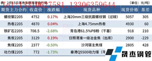 ◎ 2月15日,焦炭市場弱穩運行,唐山個別無縫厚壁鋼管廠家焦炭提降200元/噸,主流地區暫無回應,市場多觀望為主。