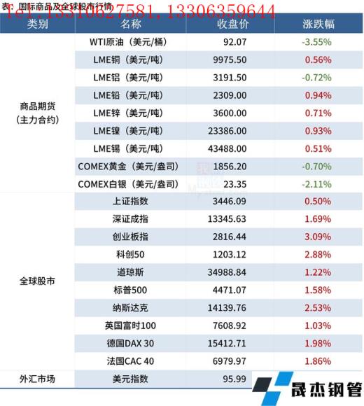 ◎ 湖南省工信廳正式發布《湖南省冶金行業“十四五”發展規劃》提出,到2025年,研發一批高附加值厚壁無縫鋼管新產品,高效品種鋼占比達到65%;培育形成1家世界500強現代化鋼鐵企業;建立規范有序的多元化廢鋼資源保障體系,力爭到2025年,湖南省鋼鐵工業的廢鋼比達到30%,全省冶金行業實現主營業務收入3000億元以上。