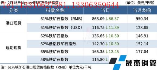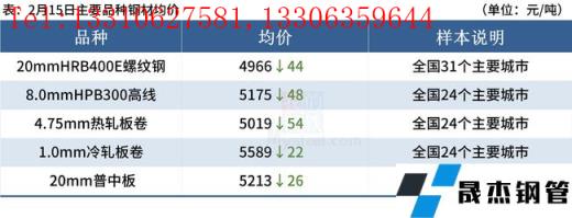 ◎ 2月15日唐山遷安地區普方坯資源出廠含稅下調50元/噸,報4650元/噸。