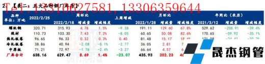 免責聲明:本網站(山東聊城晟杰無縫鋼管廠www.ginginbaby.com)刊載的“解讀:聚焦鋼鐵產業數據(2月24日)—板材總庫存首次去化,建材延續供庫雙增”等均源于網絡,版權歸原作者所有,且僅代表原作者觀點,本文所載信息僅供參考。轉載僅為學習與交流之目的,如無意中侵犯您的合法權益,請及時聯系刪除。本網站刊登此篇文章并不意味著本站贊同其觀點或證實其內容的真實性,我們不對其科學性、嚴肅性等作任何形式的保證。如果侵犯了您的版權,請盡快聯系我們予以撤銷,謝謝合作!