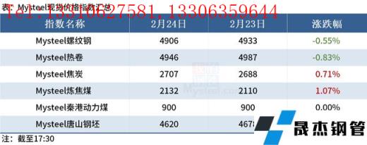 ◎ 2月24日統計新口徑114家無縫厚壁鋼管廠家進口燒結粉總庫存3317.49萬噸,燒結粉總日耗95.47萬噸。原口徑64家無縫厚壁鋼管廠家進口燒結粉總庫存1568.97萬噸,燒結粉總日耗47.32萬噸,庫存消費比33,燒結礦中平均使用進口礦配比86.39%,無縫厚壁鋼管廠家不含稅平均鐵水成本3107元/噸。詳情>>