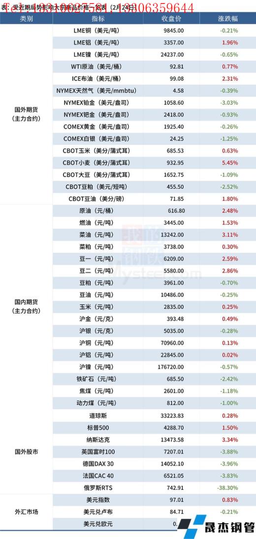免責(zé)聲明:本網(wǎng)站(山東聊城晟杰無縫鋼管廠www.ginginbaby.com)刊載的“受近期局勢(shì)影響大宗商品價(jià)格一覽表(2月24日)”等均源于網(wǎng)絡(luò),版權(quán)歸原作者所有,且僅代表原作者觀點(diǎn),本文所載信息僅供參考。轉(zhuǎn)載僅為學(xué)習(xí)與交流之目的,如無意中侵犯您的合法權(quán)益,請(qǐng)及時(shí)聯(lián)系刪除。本網(wǎng)站刊登此篇文章并不意味著本站贊同其觀點(diǎn)或證實(shí)其內(nèi)容的真實(shí)性,我們不對(duì)其科學(xué)性、嚴(yán)肅性等作任何形式的保證。如果侵犯了您的版權(quán),請(qǐng)盡快聯(lián)系我們予以撤銷,謝謝合作!