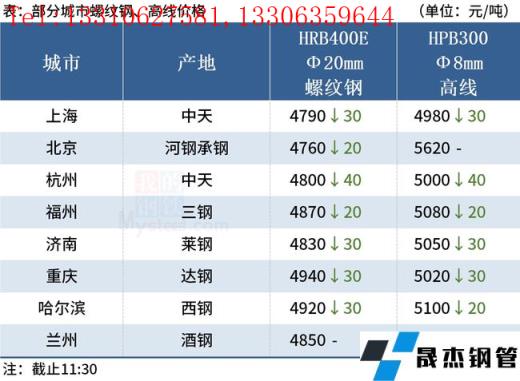 ◎濟南:25日早盤建材市場價格跌30。萊鋼螺紋4760,永鋒、石橫螺紋4750,永鋒、石橫盤螺5050。(單位:元/噸)