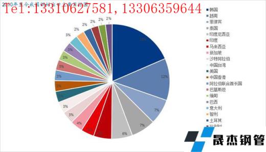 從我國出口目標國構成情況來看,我國厚壁無縫鋼管主要輸出地位韓國、越南、菲律賓、泰國等地,其中韓國及越南由于當地加工廠較多,除當地小部分消耗外,轉口貿易占大部分進口量。因此韓國、越南、菲律賓等地進口品種基本以板材為主。雖然近幾年進口量稍許有所減少,但從量級上來看仍為中國最大買家。