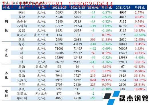 免責聲明:本網站(山東聊城晟杰無縫鋼管廠www.ginginbaby.com)刊載的“周報:大宗原材料價格周報(2.21-2.25)”等均源于網絡,版權歸原作者所有,且僅代表原作者觀點,本文所載信息僅供參考。轉載僅為學習與交流之目的,如無意中侵犯您的合法權益,請及時聯系刪除。本網站刊登此篇文章并不意味著本站贊同其觀點或證實其內容的真實性,我們不對其科學性、嚴肅性等作任何形式的保證。如果侵犯了您的版權,請盡快聯系我們予以撤銷,謝謝合作!