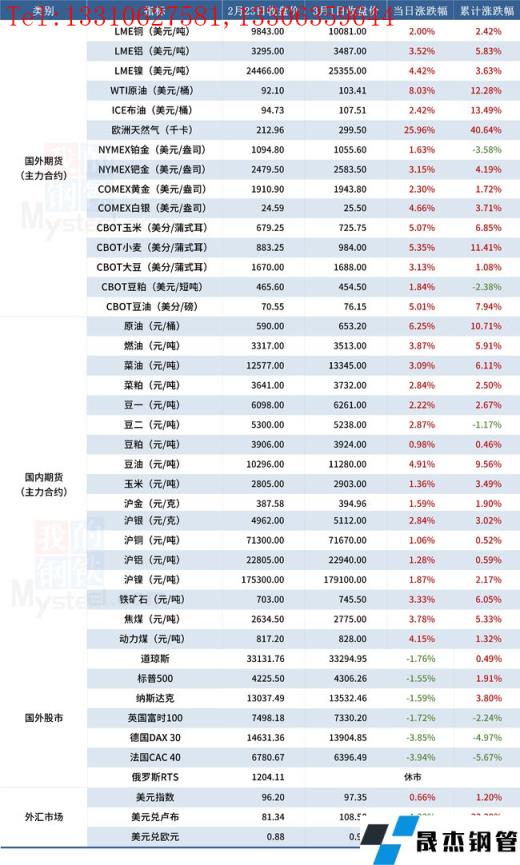 免責聲明:本網站(山東聊城晟杰無縫鋼管廠www.ginginbaby.com)刊載的“受近期局勢影響大宗商品價格一覽表(3月1日)”等均源于網絡,版權歸原作者所有,且僅代表原作者觀點,本文所載信息僅供參考。轉載僅為學習與交流之目的,如無意中侵犯您的合法權益,請及時聯系刪除。本網站刊登此篇文章并不意味著本站贊同其觀點或證實其內容的真實性,我們不對其科學性、嚴肅性等作任何形式的保證。如果侵犯了您的版權,請盡快聯系我們予以撤銷,謝謝合作!
