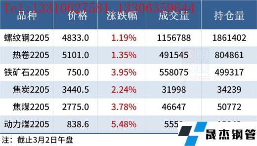 免責聲明:本網站(山東聊城晟杰無縫鋼管廠www.ginginbaby.com)刊載的“2022年03月02日午報:鋼價普遍上漲,動力煤期貨漲逾5%”等均源于網絡,版權歸原作者所有,且僅代表原作者觀點,本文所載信息僅供參考。轉載僅為學習與交流之目的,如無意中侵犯您的合法權益,請及時聯系刪除。本網站刊登此篇文章并不意味著本站贊同其觀點或證實其內容的真實性,我們不對其科學性、嚴肅性等作任何形式的保證。如果侵犯了您的版權,請盡快聯系我們予以撤銷,謝謝合作!