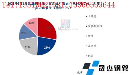 以歐盟2021年1-11月的成品厚壁無縫鋼管進口量為例,前五進口國月均進口量148萬噸,占歐盟總進口量的56%,其中土耳其、俄羅斯占比最大。而來自日本、韓國、印度、中國加起來的量占比不到6%,其中日本只占0.3%,中國占0.2%,幾乎可忽略不計。