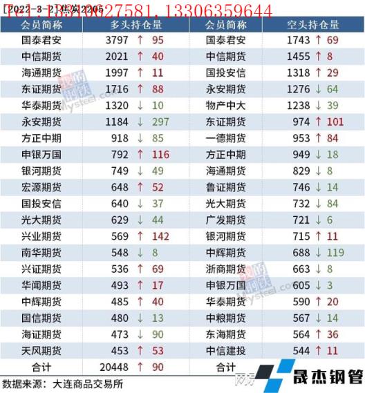 各品種持倉情況具體如下: