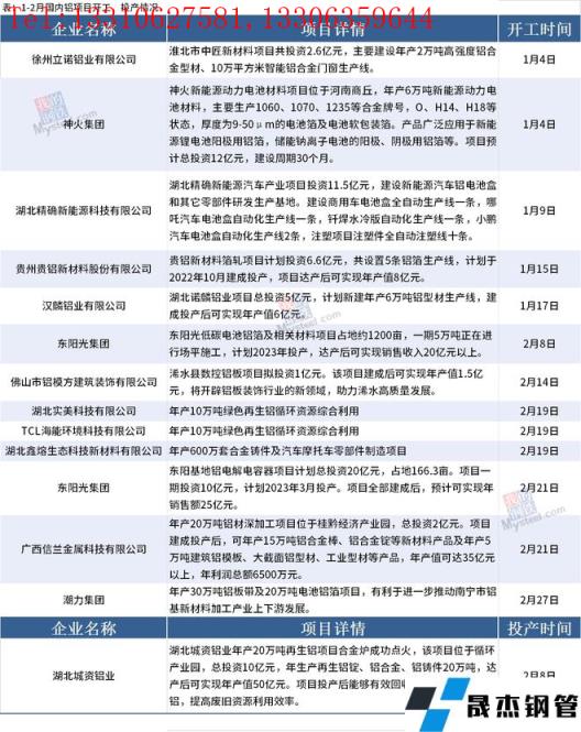 免責聲明:本網站(山東聊城晟杰無縫鋼管廠www.ginginbaby.com)刊載的“1-2月國內鋁項目開工、投產情況”等均源于網絡,版權歸原作者所有,且僅代表原作者觀點,本文所載信息僅供參考。轉載僅為學習與交流之目的,如無意中侵犯您的合法權益,請及時聯系刪除。本網站刊登此篇文章并不意味著本站贊同其觀點或證實其內容的真實性,我們不對其科學性、嚴肅性等作任何形式的保證。如果侵犯了您的版權,請盡快聯系我們予以撤銷,謝謝合作!