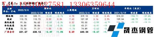 本周庫存出現分化,無縫厚壁鋼管廠家庫存下降,社會庫存累增。一般邏輯來說,現階段廠庫環比下降,主因在于無縫厚壁鋼管廠家發運節奏提升和市場采購情緒積極,社會庫存累增在于市場資源流入比例高于消化能力,需求釋放相對有限。但從近即期無縫厚壁鋼管廠家、社會庫存及總庫存變化幅度來看,無縫厚壁鋼管廠家庫存由累增轉為去化,社會庫存增幅由節后第2周的10.6%降至本周(節后第5周)的1.7%,總庫存增幅由節后第2周的7.9%降至本周(節后第5周)的1%。綜合來看,伴隨需求釋放力度加強,庫存累增幅度將延續收縮,預計3月中旬以前大概率迎拐點全面去庫。