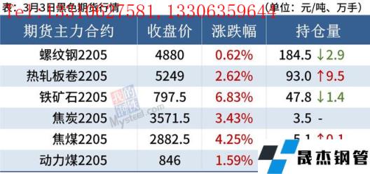 建筑厚壁無縫鋼管:3月3日,全國31個主要城市20mm三級抗震螺紋鋼均價4949元/噸,較上個交易日上漲25元/噸。供應方面,隨冬奧會結束,3月產量回升是確定性事件,在后期殘奧會及兩會結束后,產量后續的回升速度加快;成交來看,進入金3月,近期市場情緒好轉,且下游終端陸續復工,現貨價格跟隨期貨價格反彈后,成交也逐漸進入正軌。短期來看,在3月市場需求不斷回暖的情況下,還需繼續驗證在3月后期需求能否大規模的復蘇,若需求恢復力度尚可,疊加國內宏觀利好持續推進,國際俄烏事件持續發酵,從而支撐國內外厚壁無縫鋼管價格,因此預計4日國內建筑厚壁無縫鋼管或將繼續震蕩向上。