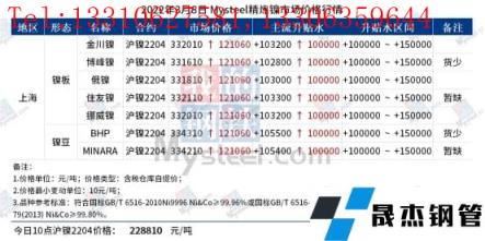 免責聲明:本網站(山東聊城晟杰無縫鋼管廠www.ginginbaby.com)刊載的“鎳價極端行情之下 下游壓力凸顯”等均源于網絡,版權歸原作者所有,且僅代表原作者觀點,本文所載信息僅供參考。轉載僅為學習與交流之目的,如無意中侵犯您的合法權益,請及時聯系刪除。本網站刊登此篇文章并不意味著本站贊同其觀點或證實其內容的真實性,我們不對其科學性、嚴肅性等作任何形式的保證。如果侵犯了您的版權,請盡快聯系我們予以撤銷,謝謝合作!