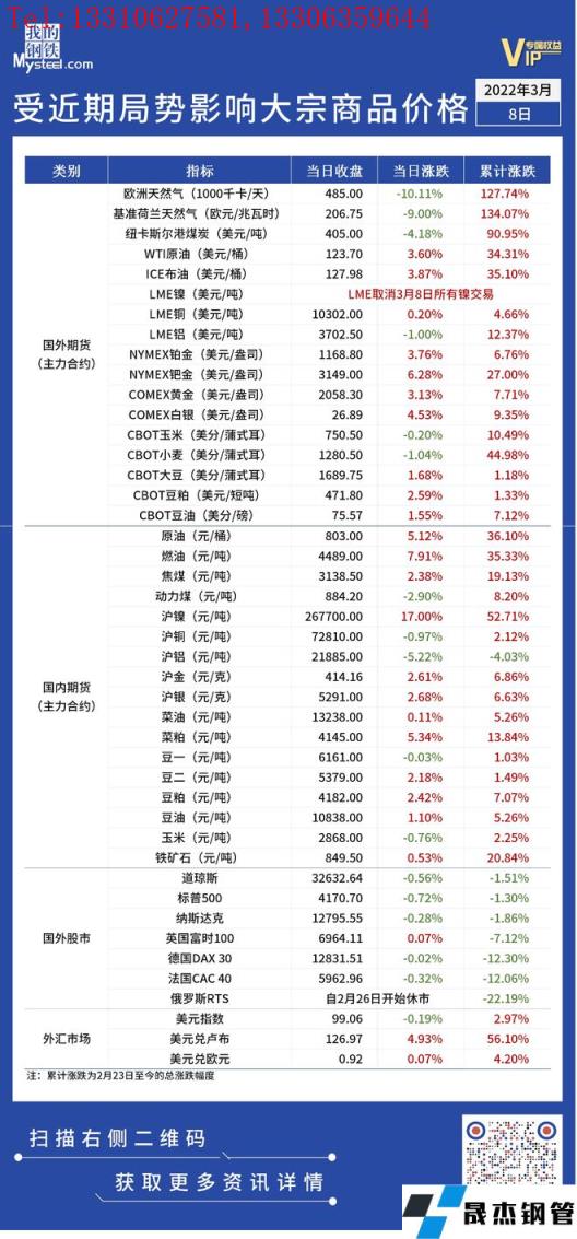 免責聲明:本網站(山東聊城晟杰無縫鋼管廠www.ginginbaby.com)刊載的“受近期局勢影響大宗商品價格一覽表(3月8日)”等均源于網絡,版權歸原作者所有,且僅代表原作者觀點,本文所載信息僅供參考。轉載僅為學習與交流之目的,如無意中侵犯您的合法權益,請及時聯系刪除。本網站刊登此篇文章并不意味著本站贊同其觀點或證實其內容的真實性,我們不對其科學性、嚴肅性等作任何形式的保證。如果侵犯了您的版權,請盡快聯系我們予以撤銷,謝謝合作!