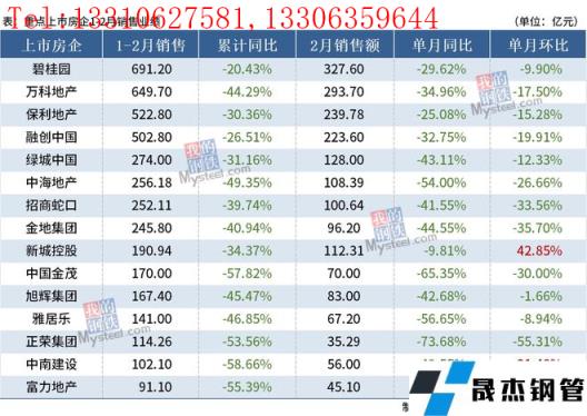 免責聲明:本網站(山東聊城晟杰無縫鋼管廠www.ginginbaby.com)刊載的“15家重點房企2月銷售同比降幅擴大,房地產下行壓力持續”等均源于網絡,版權歸原作者所有,且僅代表原作者觀點,本文所載信息僅供參考。轉載僅為學習與交流之目的,如無意中侵犯您的合法權益,請及時聯系刪除。本網站刊登此篇文章并不意味著本站贊同其觀點或證實其內容的真實性,我們不對其科學性、嚴肅性等作任何形式的保證。如果侵犯了您的版權,請盡快聯系我們予以撤銷,謝謝合作!