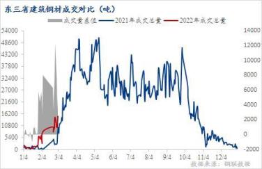 成交方面,本周東三省日均出貨量1.2萬噸,與之作對比的上周日均出貨量0.9萬噸,上上周日出貨量僅有0.49萬噸,成交量曲線圖也顯示本周以來數據往上拉升的較為明顯,且覆蓋在2021年同時期走勢圖的上方,且上升的勢頭明顯,預計后期隨著需求的繼續釋放,出貨將會持續好轉。