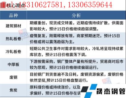 中厚板:3月14日,全國24個(gè)主要城市20mm普板均價(jià)5215元/噸,較上個(gè)交易日下跌33元/噸。今日期市接連下行,市場心態(tài)不佳,長三角區(qū)域午后接連補(bǔ)跌,受近期運(yùn)力下降,下游單位按需采購,無縫厚壁鋼管廠家整體產(chǎn)量有所提升,貿(mào)易商對后市較為悲觀,投機(jī)性鎖價(jià)訂單比例降低,市場發(fā)生降價(jià)保銷現(xiàn)象,預(yù)計(jì)15日中厚板價(jià)格繼續(xù)偏弱運(yùn)行。