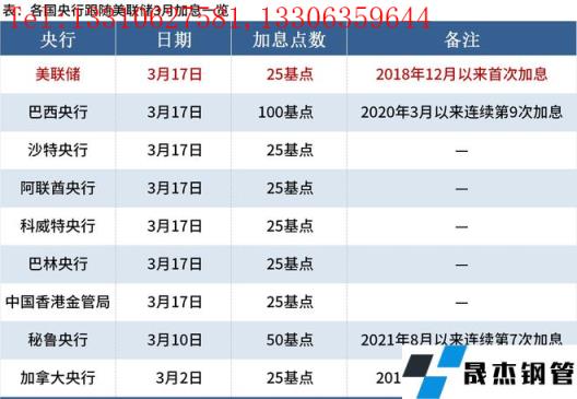 免責聲明:本網站(山東聊城晟杰無縫鋼管廠www.ginginbaby.com)刊載的“美聯儲時隔三年首次加息,多國央行緊隨其后”等均源于網絡,版權歸原作者所有,且僅代表原作者觀點,本文所載信息僅供參考。轉載僅為學習與交流之目的,如無意中侵犯您的合法權益,請及時聯系刪除。本網站刊登此篇文章并不意味著本站贊同其觀點或證實其內容的真實性,我們不對其科學性、嚴肅性等作任何形式的保證。如果侵犯了您的版權,請盡快聯系我們予以撤銷,謝謝合作!
