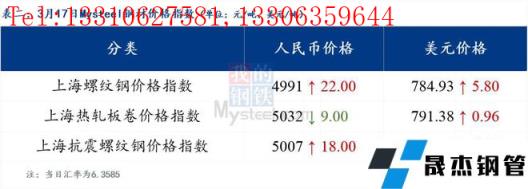免責聲明:本網站(山東聊城晟杰無縫鋼管廠www.ginginbaby.com)刊載的“2022年03月17日日報:鋼材_無縫鋼管價格指數上漲21.4元/噸”等均源于網絡,版權歸原作者所有,且僅代表原作者觀點,本文所載信息僅供參考。轉載僅為學習與交流之目的,如無意中侵犯您的合法權益,請及時聯系刪除。本網站刊登此篇文章并不意味著本站贊同其觀點或證實其內容的真實性,我們不對其科學性、嚴肅性等作任何形式的保證。如果侵犯了您的版權,請盡快聯系我們予以撤銷,謝謝合作!
