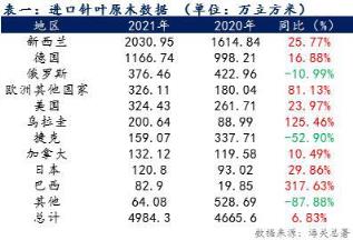引言:我國原木進口多年來保持正增長,在2020年的4665.6萬立方米基數(shù)下,2021年進口針葉原木同比增加仍舊達6.83個點 ,現(xiàn)國際形勢波動,在保整內(nèi)需情況下預(yù)計進口格局將有調(diào)整。