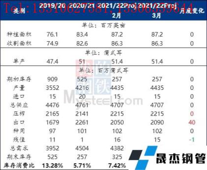 其二:南美大豆減產(chǎn)之后,美國大豆出口環(huán)境向好。3月份USDA供需報告數(shù)據(jù)顯示,考慮到南美大豆減產(chǎn)之后,美國舊作大豆出口數(shù)量上調(diào)0.4億蒲至20.9億蒲,最終令2021/2022年度美國大豆結(jié)轉(zhuǎn)庫存落至2.85億蒲,庫消比6.45%。美國大豆結(jié)轉(zhuǎn)庫存的繼續(xù)走低,令美國大豆舊作平衡表不斷收緊,對CBOT大豆近月合約價格提供了一定支撐;且近三個月來由于美國大豆結(jié)轉(zhuǎn)庫存的不斷走低,與全球大豆去庫節(jié)奏形成共振,而非此前的拖累。