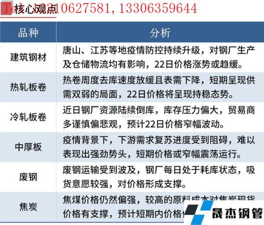 國內多省市升級調整疫情防控,下游工地施工進度放緩,導致鋼市成交量下滑。無縫厚壁鋼管廠家生產影響相對較小,但若唐山交通管制持續,不排除高爐廠也會減產或停產。短期內,鋼市供需基本面偏弱,成本支撐力度較強。在重大利好政策出臺以及全國疫情得到有效控制之前,鋼價或繼續震蕩運行。