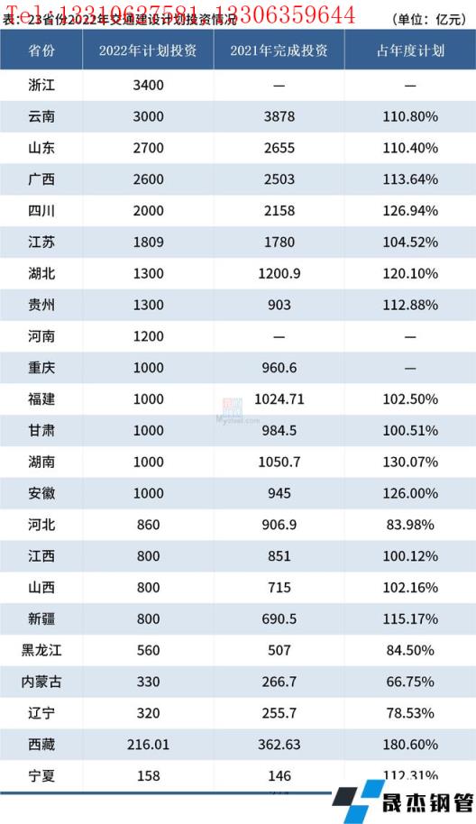 免責(zé)聲明:本網(wǎng)站(山東聊城晟杰無縫鋼管廠www.ginginbaby.com)刊載的“23省份2022年交通建設(shè)計劃投資近3萬億元”等均源于網(wǎng)絡(luò),版權(quán)歸原作者所有,且僅代表原作者觀點(diǎn),本文所載信息僅供參考。轉(zhuǎn)載僅為學(xué)習(xí)與交流之目的,如無意中侵犯您的合法權(quán)益,請及時聯(lián)系刪除。本網(wǎng)站刊登此篇文章并不意味著本站贊同其觀點(diǎn)或證實(shí)其內(nèi)容的真實(shí)性,我們不對其科學(xué)性、嚴(yán)肅性等作任何形式的保證。如果侵犯了您的版權(quán),請盡快聯(lián)系我們予以撤銷,謝謝合作!
