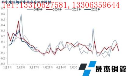 2022年北京建筑厚壁無縫鋼管市場庫存量在春節(jié)后的第5周達到峰值,較往年累庫周期延長了1-2周,之后庫存量進入緩慢去化階段,但是從近幾周庫存去化情況來看,庫存下降情況不及預期。截止到3月24日,北京建筑厚壁無縫鋼管市場庫存量82.18萬噸,周環(huán)比降0.72%,2019-2021年同期的周環(huán)比降幅分別為7.9%、5.3%、8%;另外目前市場庫存量較今年庫存高點下降了2.8%,而2019-2021年同期庫存量較當年的庫存峰值分別下降了17.8%、9.3%、15.5%。庫存下降除供應量環(huán)比略增外,主因是需求下降,且受疫情影響資源向外分流困難。