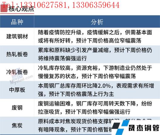 供給方面,受疫情影響,全國高爐廠復產進度放緩,部分電爐廠因虧損選擇停產檢修,本周鋼鐵產量增加有限。需求方面,多地疫情管控升級,物流運輸受阻,工程施工放緩,對厚壁無縫鋼管需求影響更大。無縫厚壁鋼管廠家?guī)齑嬉堰B續(xù)兩周環(huán)比增加,供需基本面偏弱。不過,由于成本支撐及輸入性通脹壓力加大,廠商也無降價意愿。短期內,鋼市不確定因素較多,鋼價或震蕩偏強,板材表現強于建材,持續(xù)關注國內疫情及國際局勢變化。