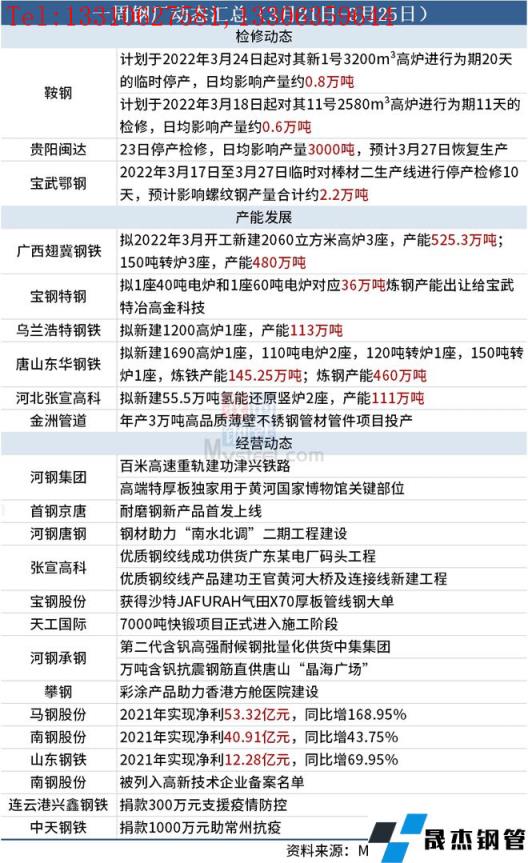 據(jù)不完全統(tǒng)計,本周(3月21日-3月25日)有3家無縫厚壁鋼管廠家發(fā)布檢修動態(tài),具體如下:
