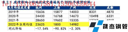 自3月中旬以來,受上海、江蘇、山東等地疫情封控影響,下游工地施工節(jié)奏大幅放緩。華東地區(qū)螺紋鋼表觀消費量3月中旬為156萬噸/周,4月中旬僅119萬噸/周,下降了23%。若長三角疫情在5月上旬得到控制,復工復產(chǎn)逐步有序恢復。我們根據(jù)歷史經(jīng)驗和今年的需求特點,推演認為螺紋周均表需(鋼聯(lián)口徑)有望達到340-350萬噸/周。而其他受疫情影響較小的地區(qū),社庫去庫速率緩慢,成交低于2020年同期,實際厚壁無縫鋼管需求不容樂觀,疫情結(jié)束后這些地區(qū)為需求帶來的增量有限。