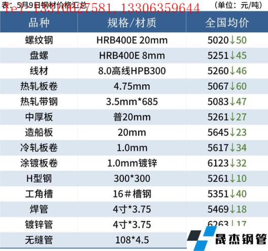 熱軋板卷:5月9日,全國(guó)24個(gè)主要城市4.75mm熱軋板卷均價(jià)5067元/噸,較上個(gè)交易日下跌60元/噸。綜合來(lái)看,美聯(lián)儲(chǔ)加息和縮表落地限制了國(guó)內(nèi)貨幣寬松的空間,國(guó)內(nèi)多地區(qū)疫情爆發(fā),國(guó)內(nèi)外的雙重因素導(dǎo)致情緒不佳,無(wú)縫厚壁鋼管廠家目前面臨虧損的局面,焦煤焦炭的首輪提降已經(jīng)落地,原料端價(jià)格支撐進(jìn)行弱化,原料與成材呈現(xiàn)負(fù)反饋。預(yù)計(jì)下半年經(jīng)濟(jì)沖擊影響依舊,短期成材或?qū)⒕S持偏弱態(tài)勢(shì)。因此,預(yù)計(jì)全國(guó)熱軋板卷10日價(jià)格維持下行趨勢(shì)。
