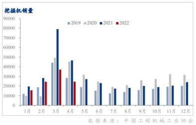受疫情持續影響、房地產和基建工程開工率低迷等因素影響, 4月份工程機械的核心代表挖掘機銷售量同環比雙降。