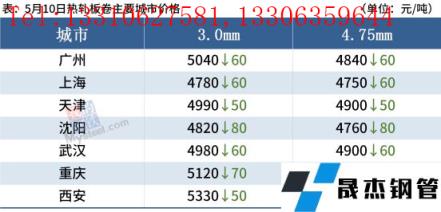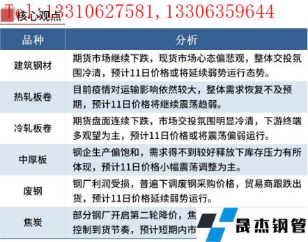 中厚板:5月10日,全國24個主要城市20mm普板均價5235元/噸,較上個交易日下跌26元/噸。從供給端來看,目前全國中厚板鋼企生產偏飽和,產量進一步釋放空間有限,上半年中板產量高點大概率已經出現在4月下旬結合今年的壓減粗鋼產量政策,當前正是減產檢修的最佳時機,加之部分無縫厚壁鋼管廠家虧損,未來或有下降空間。隨著物流運輸較前期有所改善,運力也會得到釋放,如果需求得不到較好的釋放,庫存壓力或許在未來有所體現。綜合來看,預計11日全國中厚板市場價格小幅震蕩調整為主。