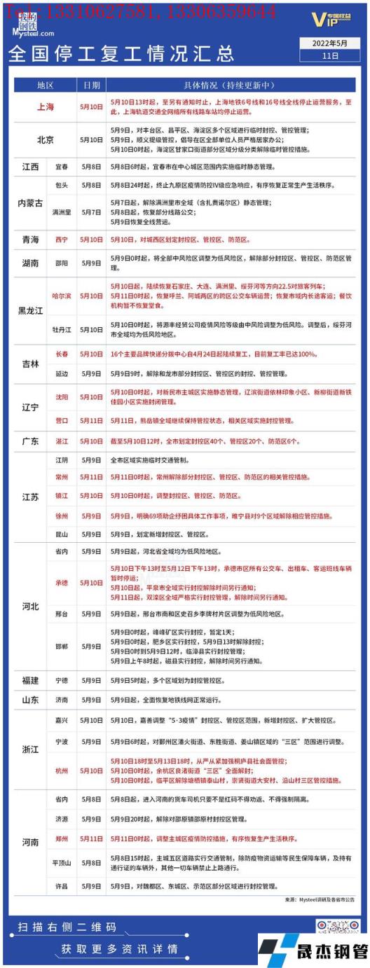 免責聲明:本網站(山東聊城晟杰無縫鋼管廠www.ginginbaby.com)刊載的“疫情影響丨全國停工復工情況匯總(5月11日)”等均源于網絡,版權歸原作者所有,且僅代表原作者觀點,本文所載信息僅供參考。轉載僅為學習與交流之目的,如無意中侵犯您的合法權益,請及時聯系刪除。本網站刊登此篇文章并不意味著本站贊同其觀點或證實其內容的真實性,我們不對其科學性、嚴肅性等作任何形式的保證。如果侵犯了您的版權,請盡快聯系我們予以撤銷,謝謝合作!