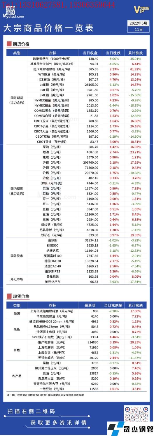 免責聲明:本網站(山東聊城晟杰無縫鋼管廠www.ginginbaby.com)刊載的“俄烏局勢丨大宗商品價格一覽表(5月11日)”等均源于網絡,版權歸原作者所有,且僅代表原作者觀點,本文所載信息僅供參考。轉載僅為學習與交流之目的,如無意中侵犯您的合法權益,請及時聯系刪除。本網站刊登此篇文章并不意味著本站贊同其觀點或證實其內容的真實性,我們不對其科學性、嚴肅性等作任何形式的保證。如果侵犯了您的版權,請盡快聯系我們予以撤銷,謝謝合作!