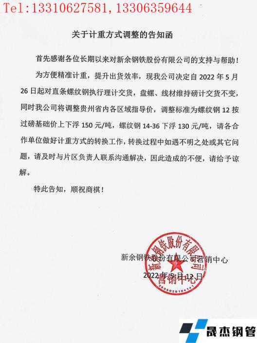 免責聲明:本網(wǎng)站(山東聊城晟杰無縫鋼管廠www.ginginbaby.com)刊載的“新余鋼鐵股份有限公司關(guān)于對貴州區(qū)域計重方式調(diào)整的告知函”等均源于網(wǎng)絡(luò),版權(quán)歸原作者所有,且僅代表原作者觀點,本文所載信息僅供參考。轉(zhuǎn)載僅為學(xué)習(xí)與交流之目的,如無意中侵犯您的合法權(quán)益,請及時聯(lián)系刪除。本網(wǎng)站刊登此篇文章并不意味著本站贊同其觀點或證實其內(nèi)容的真實性,我們不對其科學(xué)性、嚴肅性等作任何形式的保證。如果侵犯了您的版權(quán),請盡快聯(lián)系我們予以撤銷,謝謝合作!