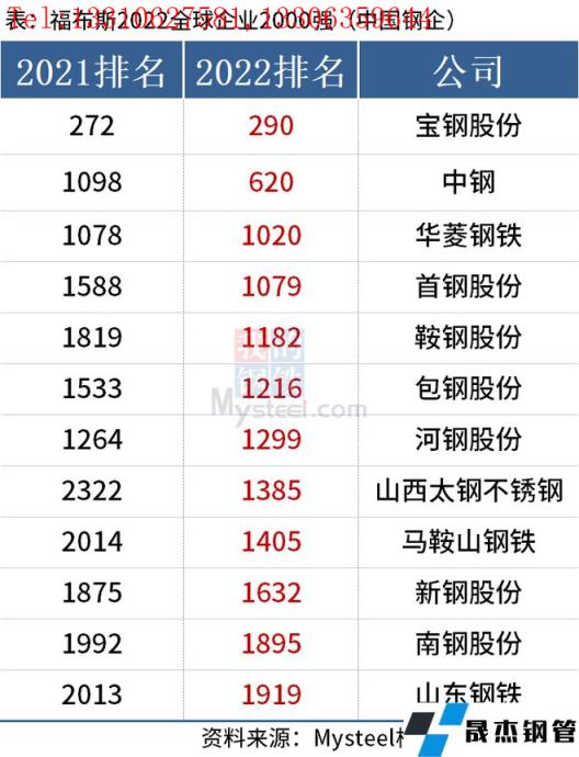 免責聲明:本網站(山東聊城晟杰無縫鋼管廠www.ginginbaby.com)刊載的“中國12家鋼企上榜福布斯2022全球企業2000強”等均源于網絡,版權歸原作者所有,且僅代表原作者觀點,本文所載信息僅供參考。轉載僅為學習與交流之目的,如無意中侵犯您的合法權益,請及時聯系刪除。本網站刊登此篇文章并不意味著本站贊同其觀點或證實其內容的真實性,我們不對其科學性、嚴肅性等作任何形式的保證。如果侵犯了您的版權,請盡快聯系我們予以撤銷,謝謝合作!