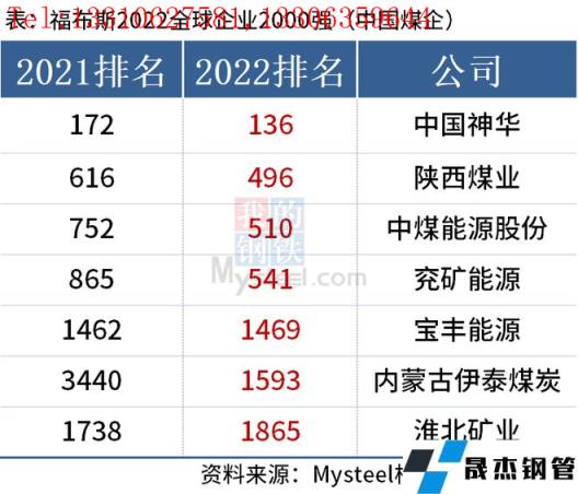 免責(zé)聲明:本網(wǎng)站(山東聊城晟杰無(wú)縫鋼管廠www.ginginbaby.com)刊載的“中國(guó)7家煤企上榜福布斯2022全球企業(yè)2000強(qiáng)”等均源于網(wǎng)絡(luò),版權(quán)歸原作者所有,且僅代表原作者觀點(diǎn),本文所載信息僅供參考。轉(zhuǎn)載僅為學(xué)習(xí)與交流之目的,如無(wú)意中侵犯您的合法權(quán)益,請(qǐng)及時(shí)聯(lián)系刪除。本網(wǎng)站刊登此篇文章并不意味著本站贊同其觀點(diǎn)或證實(shí)其內(nèi)容的真實(shí)性,我們不對(duì)其科學(xué)性、嚴(yán)肅性等作任何形式的保證。如果侵犯了您的版權(quán),請(qǐng)盡快聯(lián)系我們予以撤銷(xiāo),謝謝合作!
