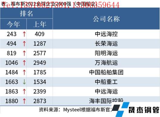 免責聲明:本網站(山東聊城晟杰無縫鋼管廠www.ginginbaby.com)刊載的“:中國8家船企上榜福布斯2022全球企業(yè)2000強”等均源于網絡,版權歸原作者所有,且僅代表原作者觀點,本文所載信息僅供參考。轉載僅為學習與交流之目的,如無意中侵犯您的合法權益,請及時聯系刪除。本網站刊登此篇文章并不意味著本站贊同其觀點或證實其內容的真實性,我們不對其科學性、嚴肅性等作任何形式的保證。如果侵犯了您的版權,請盡快聯系我們予以撤銷,謝謝合作!
