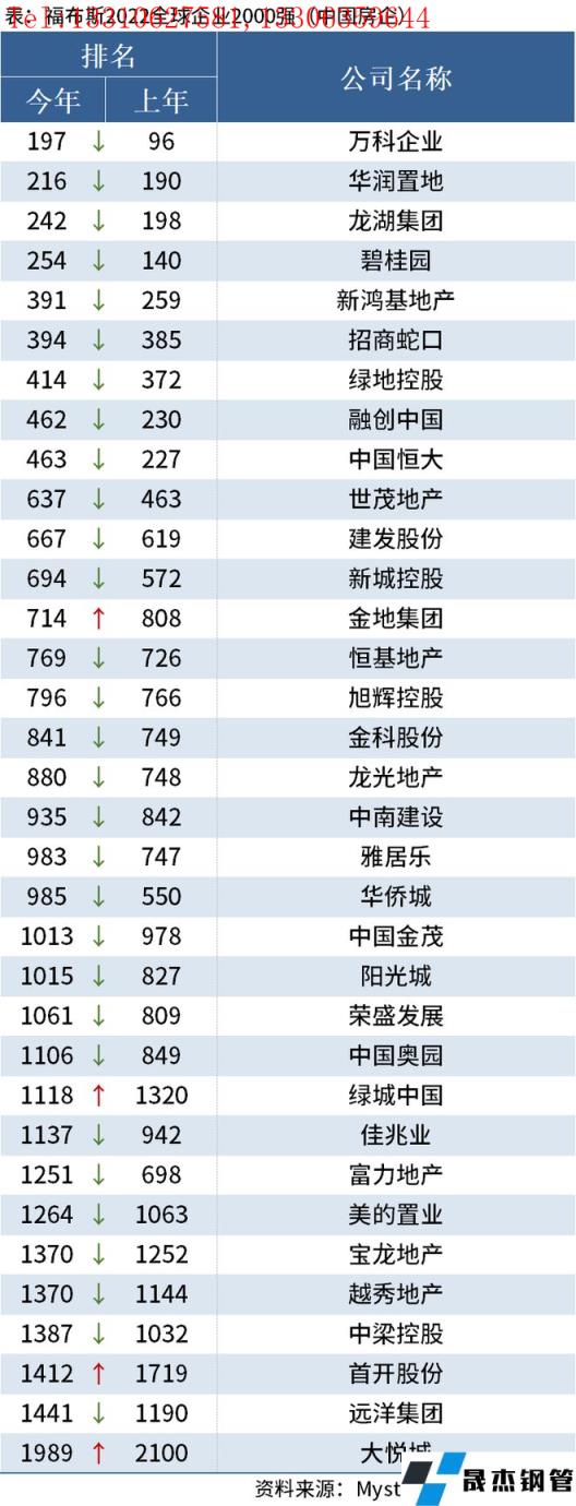 免責聲明:本網站(山東聊城晟杰無縫鋼管廠www.ginginbaby.com)刊載的“中國34家房企上榜福布斯2022全球企業2000強”等均源于網絡,版權歸原作者所有,且僅代表原作者觀點,本文所載信息僅供參考。轉載僅為學習與交流之目的,如無意中侵犯您的合法權益,請及時聯系刪除。本網站刊登此篇文章并不意味著本站贊同其觀點或證實其內容的真實性,我們不對其科學性、嚴肅性等作任何形式的保證。如果侵犯了您的版權,請盡快聯系我們予以撤銷,謝謝合作!