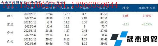 據調研,截止2022年5月13日,西南市場厚壁無縫鋼管累計社會庫存為218.58萬噸,環比減少6.14萬噸,降幅2.73%。分省份來看,本周四川市場厚壁無縫鋼管庫存為83.59萬噸,環比增加1.08萬噸,漲幅1.31%;重慶市場厚壁無縫鋼管庫存為69.55萬噸,環比減少1.15萬噸,降幅1.63%;貴州市場厚壁無縫鋼管庫存為27.03萬噸,環比減少4.57萬噸,降幅14.46%;云南市場厚壁無縫鋼管庫存為38.41萬噸,環比減少1.5萬噸,降幅3.76%。