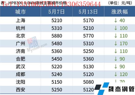 據監測,截至5月13日,全國主要城市20mm三級抗震螺紋鋼均價4956元/噸,較5月7日下跌114元/噸;8.0mmHPB300高線均價5205元/噸,較5月7日下跌101元/噸。
