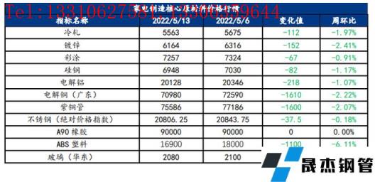 截止2022年5月13日,各原材料當(dāng)日即時價格以及價格周環(huán)比情況如下: