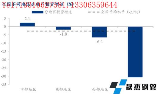 分區域來看,中部地區地產投資表現最好,累計同比仍維持著2.1%的正增長,其次為東部地區,同比降幅僅1.8%,二者降幅均明顯低于全國平均水平。西部地區及東北地區投資降幅明顯高于其他地區,降幅分別達到6.4%和30.5%。反映房地產企業投資的謹慎度明顯上升,投資集中在市場較為成熟的東部及中部地區,對于經濟不發達的地區投資額明顯下滑。但值得注意的是,這或將導致市場投機情緒升溫。