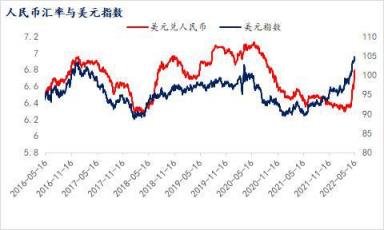 2022年3月,美聯(lián)儲(chǔ)宣布將基準(zhǔn)利率上調(diào)25個(gè)基點(diǎn),正式進(jìn)入加息周期,5月更是宣布一次性加息50個(gè)基點(diǎn),引起了全球資本市場(chǎng)的動(dòng)蕩,而美元作為全球避險(xiǎn)資產(chǎn),在此輪加息過程中不斷走強(qiáng),截至目前美元指數(shù)年內(nèi)漲幅高達(dá)8.57%。相比來看,從今年4月中旬開始,人民幣匯率卻出現(xiàn)連續(xù)大貶值的走勢(shì),其中人民幣離岸匯率從4月18日的6.372快速貶至5月16日的6.79,幅度達(dá)到6.3%,在岸匯率同期從6.363貶至5月12日的6.7994,幅度達(dá)到6.86%。同期歐元貶值8.2%,日元貶值12.88%,韓幣貶值7.93%,而盧布年初至今對(duì)美元升值1.8%,澳元對(duì)美元微貶2.4%。從匯率上也可以看出,在全球通脹及美元走強(qiáng)背景下,能源原料出口國(guó)如俄羅斯、澳大利亞等國(guó)匯率相對(duì)堅(jiān)挺,而產(chǎn)成品出口國(guó)如中國(guó)、日本、韓國(guó)等面臨較大貶值壓力。