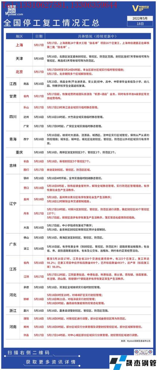 免責聲明:本網站(山東聊城晟杰無縫鋼管廠www.ginginbaby.com)刊載的“疫情影響丨全國停工復工情況匯總(5月18日)”等均源于網絡,版權歸原作者所有,且僅代表原作者觀點,本文所載信息僅供參考。轉載僅為學習與交流之目的,如無意中侵犯您的合法權益,請及時聯系刪除。本網站刊登此篇文章并不意味著本站贊同其觀點或證實其內容的真實性,我們不對其科學性、嚴肅性等作任何形式的保證。如果侵犯了您的版權,請盡快聯系我們予以撤銷,謝謝合作!