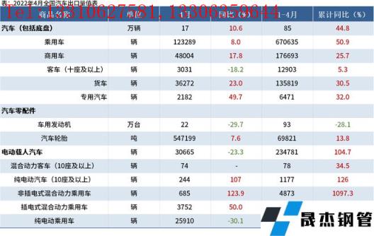 免責聲明:本網(wǎng)站(山東聊城晟杰無縫鋼管廠www.ginginbaby.com)刊載的“海關(guān)總署:4月中國出口汽車17萬輛,同比增長10.6%”等均源于網(wǎng)絡(luò),版權(quán)歸原作者所有,且僅代表原作者觀點,本文所載信息僅供參考。轉(zhuǎn)載僅為學習與交流之目的,如無意中侵犯您的合法權(quán)益,請及時聯(lián)系刪除。本網(wǎng)站刊登此篇文章并不意味著本站贊同其觀點或證實其內(nèi)容的真實性,我們不對其科學性、嚴肅性等作任何形式的保證。如果侵犯了您的版權(quán),請盡快聯(lián)系我們予以撤銷,謝謝合作!