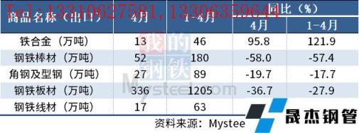 免責聲明:本網站(山東聊城晟杰無縫鋼管廠www.ginginbaby.com)刊載的“海關總署:4月中國出口板材336萬噸,同比降36.7%”等均源于網絡,版權歸原作者所有,且僅代表原作者觀點,本文所載信息僅供參考。轉載僅為學習與交流之目的,如無意中侵犯您的合法權益,請及時聯系刪除。本網站刊登此篇文章并不意味著本站贊同其觀點或證實其內容的真實性,我們不對其科學性、嚴肅性等作任何形式的保證。如果侵犯了您的版權,請盡快聯系我們予以撤銷,謝謝合作!