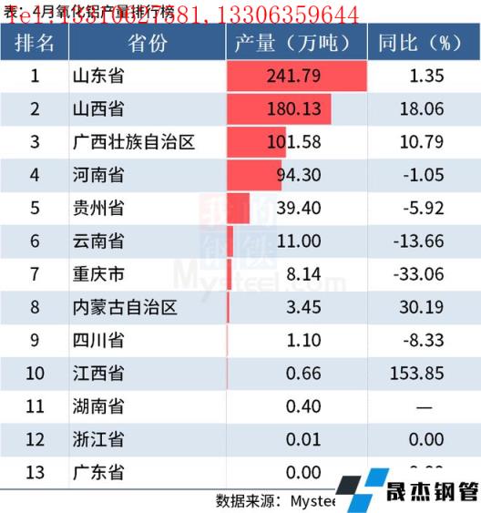 免責(zé)聲明:本網(wǎng)站(山東聊城晟杰無縫鋼管廠www.ginginbaby.com)刊載的“統(tǒng)計局:前4月全國分省市鋁材、氧化鋁產(chǎn)量出爐”等均源于網(wǎng)絡(luò),版權(quán)歸原作者所有,且僅代表原作者觀點(diǎn),本文所載信息僅供參考。轉(zhuǎn)載僅為學(xué)習(xí)與交流之目的,如無意中侵犯您的合法權(quán)益,請及時聯(lián)系刪除。本網(wǎng)站刊登此篇文章并不意味著本站贊同其觀點(diǎn)或證實(shí)其內(nèi)容的真實(shí)性,我們不對其科學(xué)性、嚴(yán)肅性等作任何形式的保證。如果侵犯了您的版權(quán),請盡快聯(lián)系我們予以撤銷,謝謝合作!